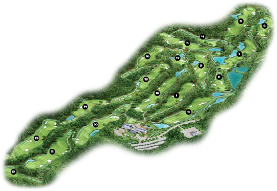 맑은 하천을 감싸고 돌아가는 자연수림대와 워터해저드를 가로지르는 도전적인 밸리코스